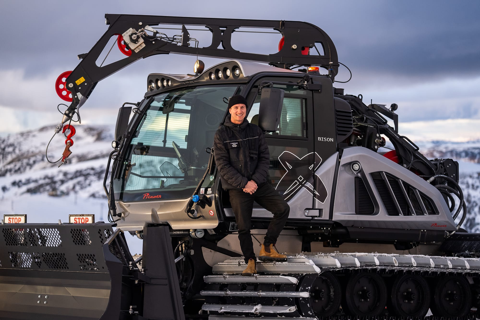 For the past few weeks, Jesse has been running a new grooming machine, a Prinoth Bison X, which he calls “the Swiss army knife of snow cats”.
