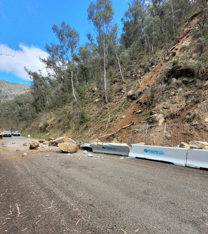 The NPWS were set to open the Elliott Way on Friday 30 September after the recent closure due to rock slides. But the recent rain of the past few days have put an end to the opening after more rocks released from the slopes above landing on the road. While the rock falls were nowhere near as large as the original land slip, you would not have wanted to be a motorist driving past as these new rocks tumbled down the slope.