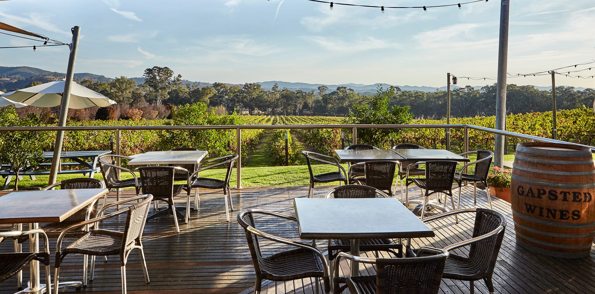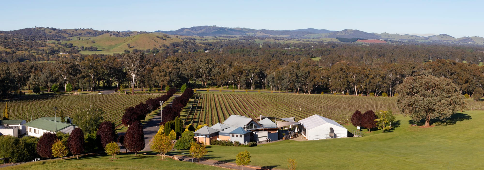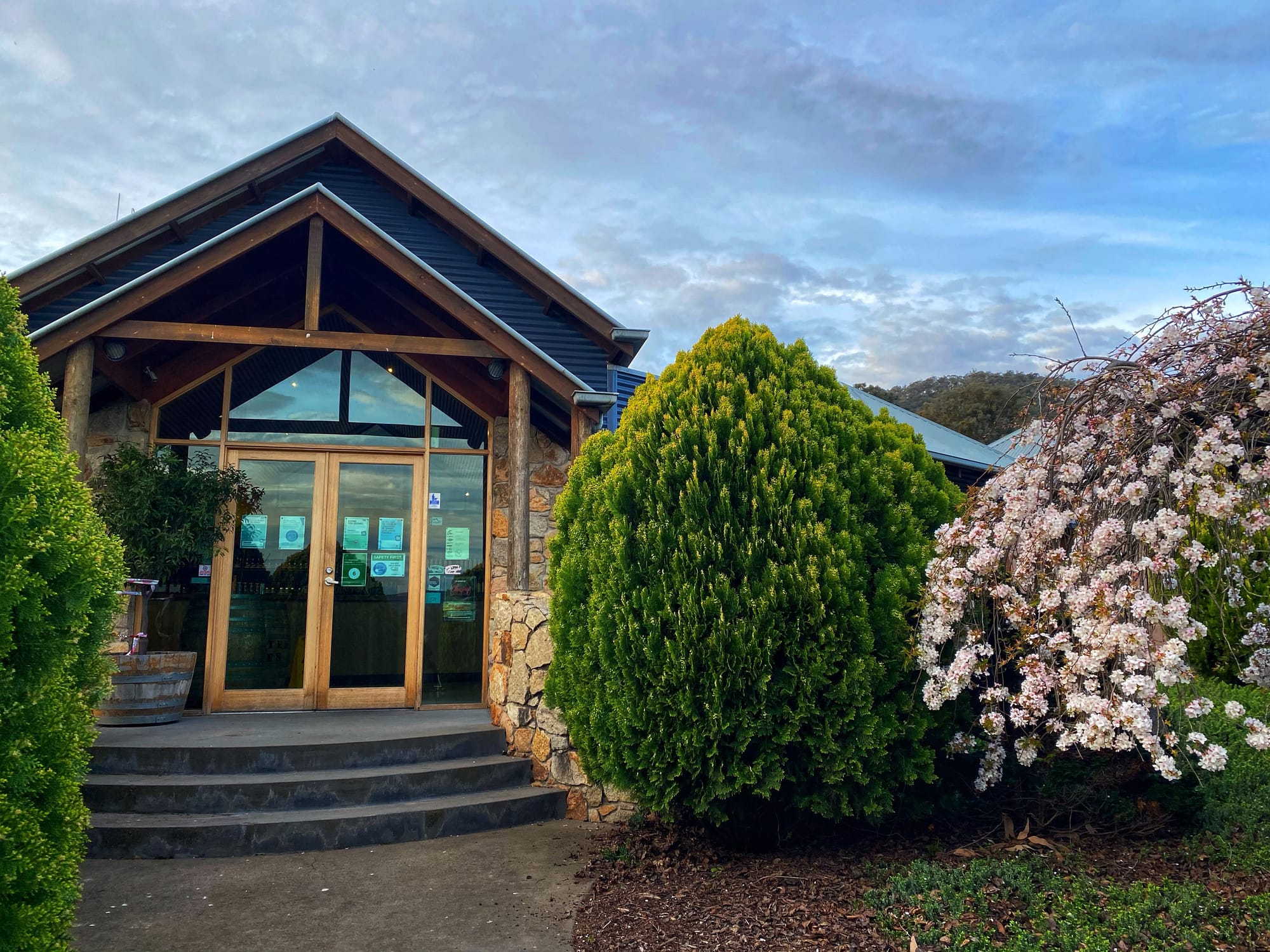 The cellar door and restaurant, which was awarded Gourmet Traveller Wine's 2021 Cellar Door with Best Food is open Thursdays – Mondays for wine tasting and delicious meals produced from fresh seasonal local produce, all set against the backdrop of the vineyards and mountains beyond. The winery is conveniently located on the Murray to Mountains Rail Trail, just 5 minutes from Myrtleford.